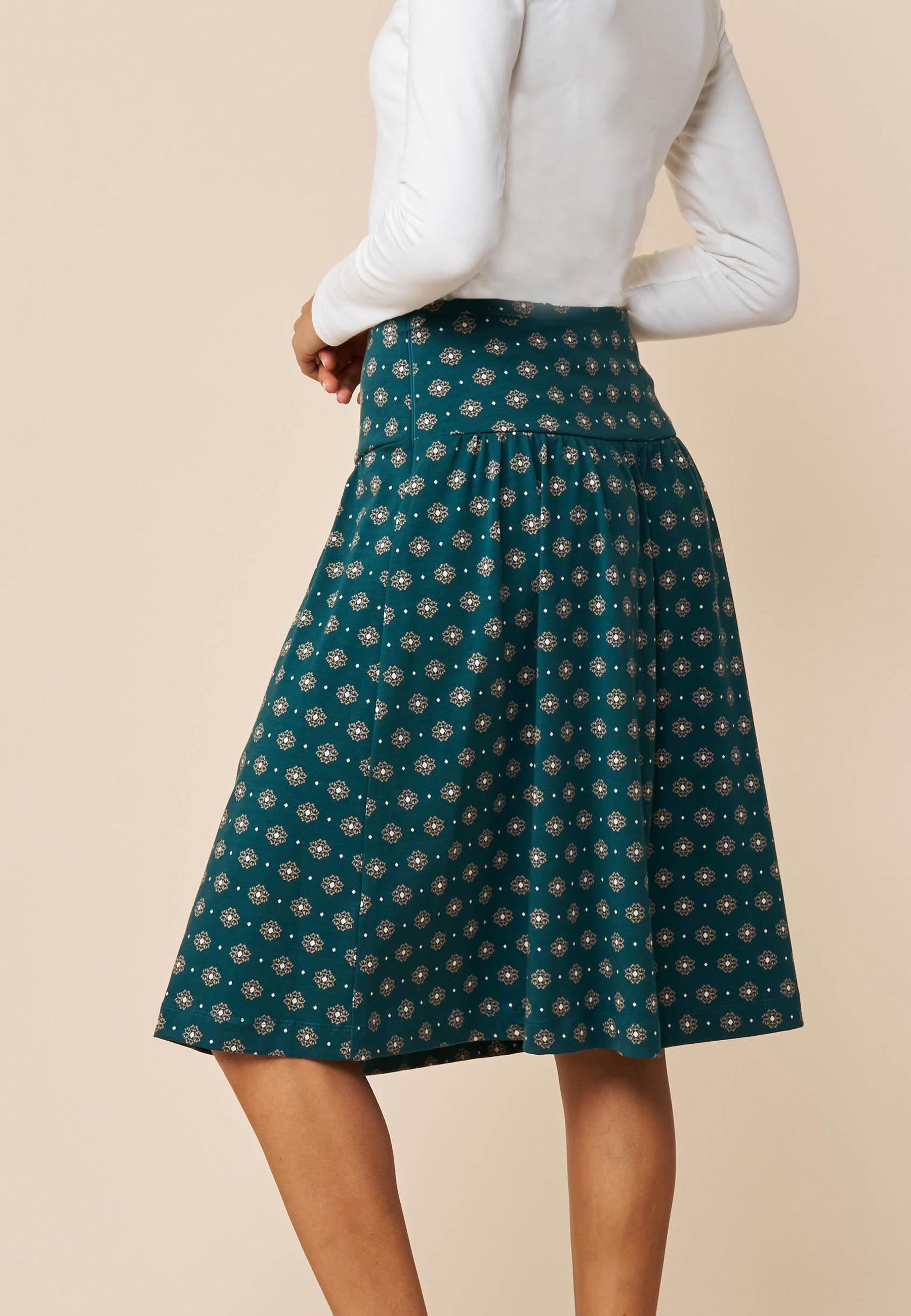 Unglaublich bequem und vielseitig zu stylen kommt Rock Donia daher. Durch seinen hohen elastischen Bund und dem stark angekrausten Rock macht er sowohl mit warmen Strickpullovern als auch mit schmalgeschnittenen Shirts immer eine gute Figur. Ein Must-Have der Kollektion.