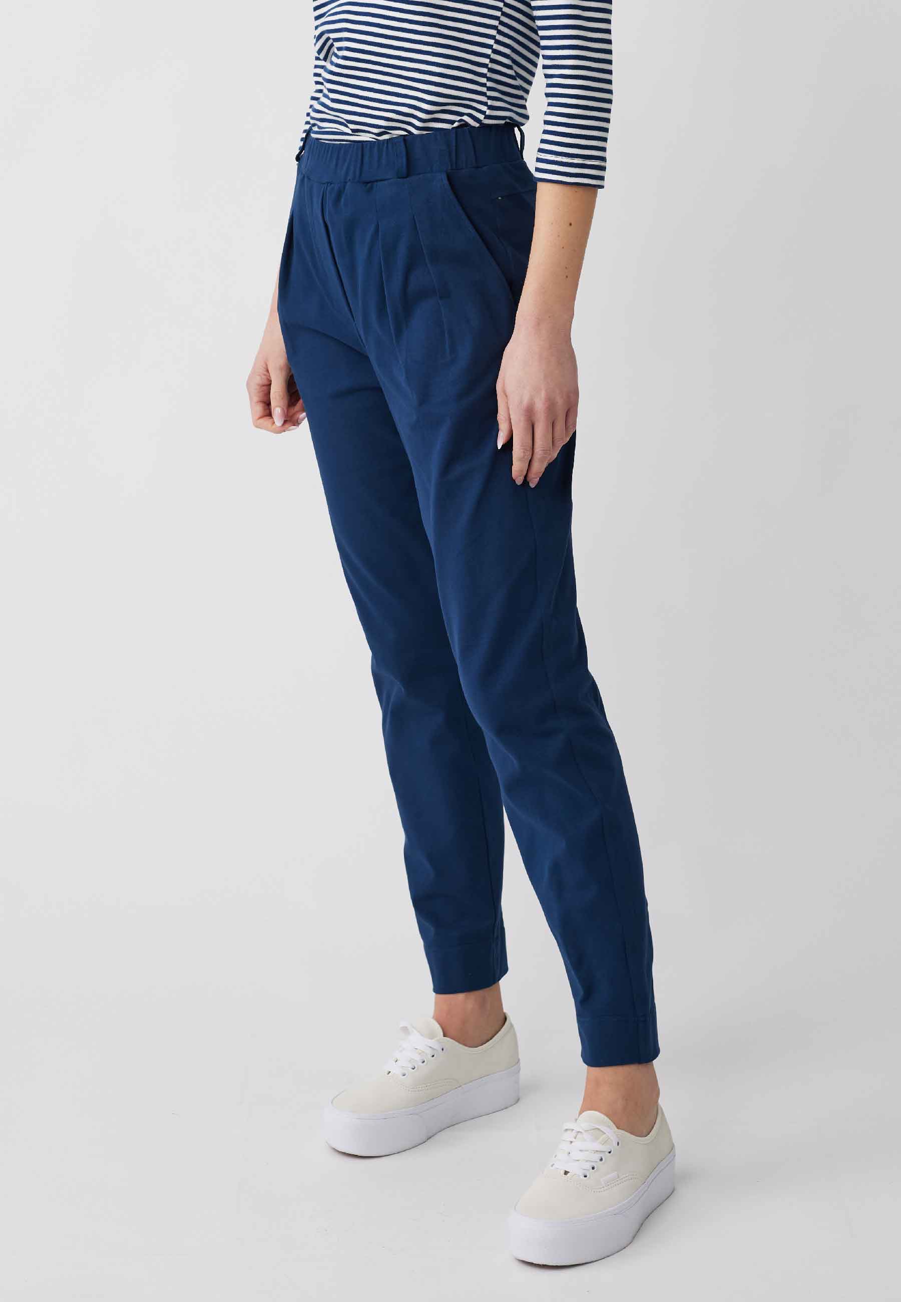 Klassiker und Must-have zugleich ist die Hose Adalia mit eng zulaufendem Bein. Die lange Hose mit elastischem, hohem Bund, lockerer Passform und seitlichen Eingriffstaschen überzeugt durch ihr schlichtes Design. Das elastische Material verspricht Tragekomfort und Formstabilität. Kombiniert mit Blazer Susana kreieren Sie einen edlen Hosenanzug.