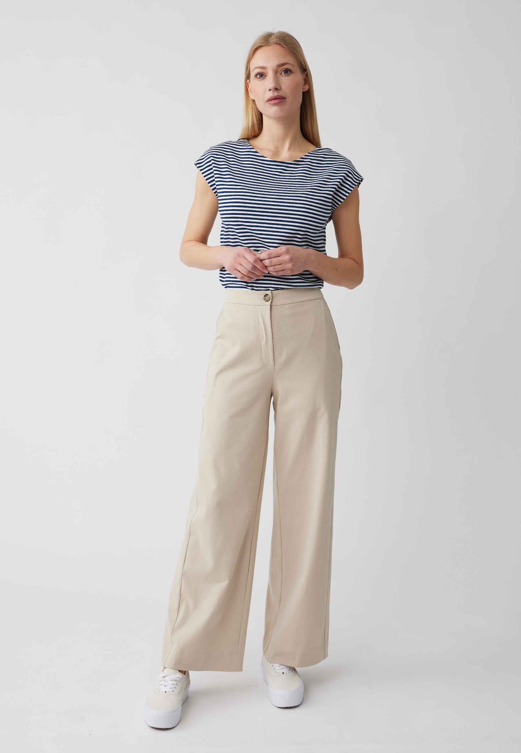 Die Hose Susana mit hohem Bund, geschlossen mit Knopf und Zipper, überzeugt mit ihrem weiten Bein und sorgt für einen lässigen Auftritt. Mit dem bequemen Gummibund im Rücken passt sie sich optimal jeder Figur an. Seitliche Eingriffstaschen runden den Komfort ab, in Kombination mit Blazer Susana ein edler Hosenanzug für viele Gelegenheiten.