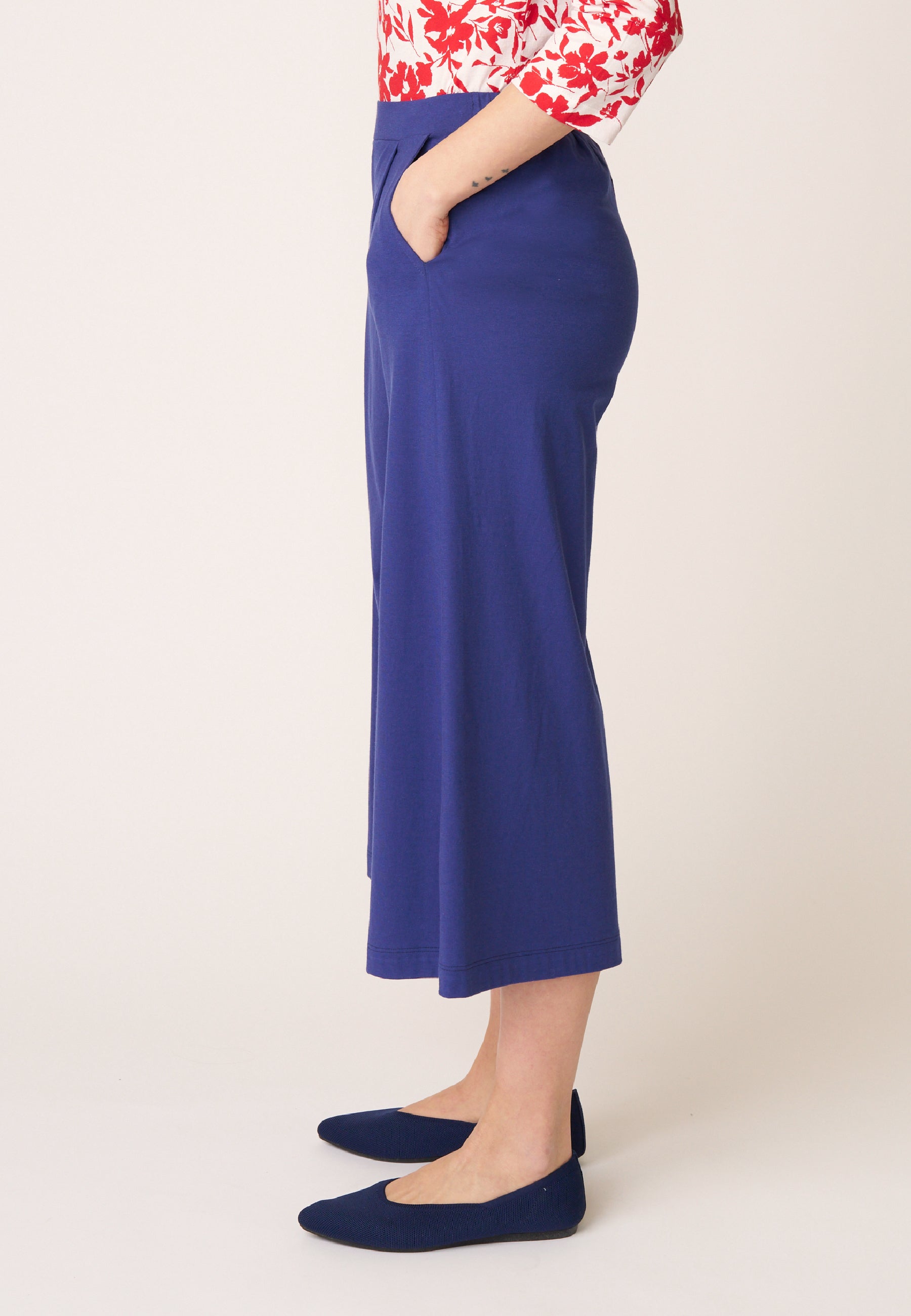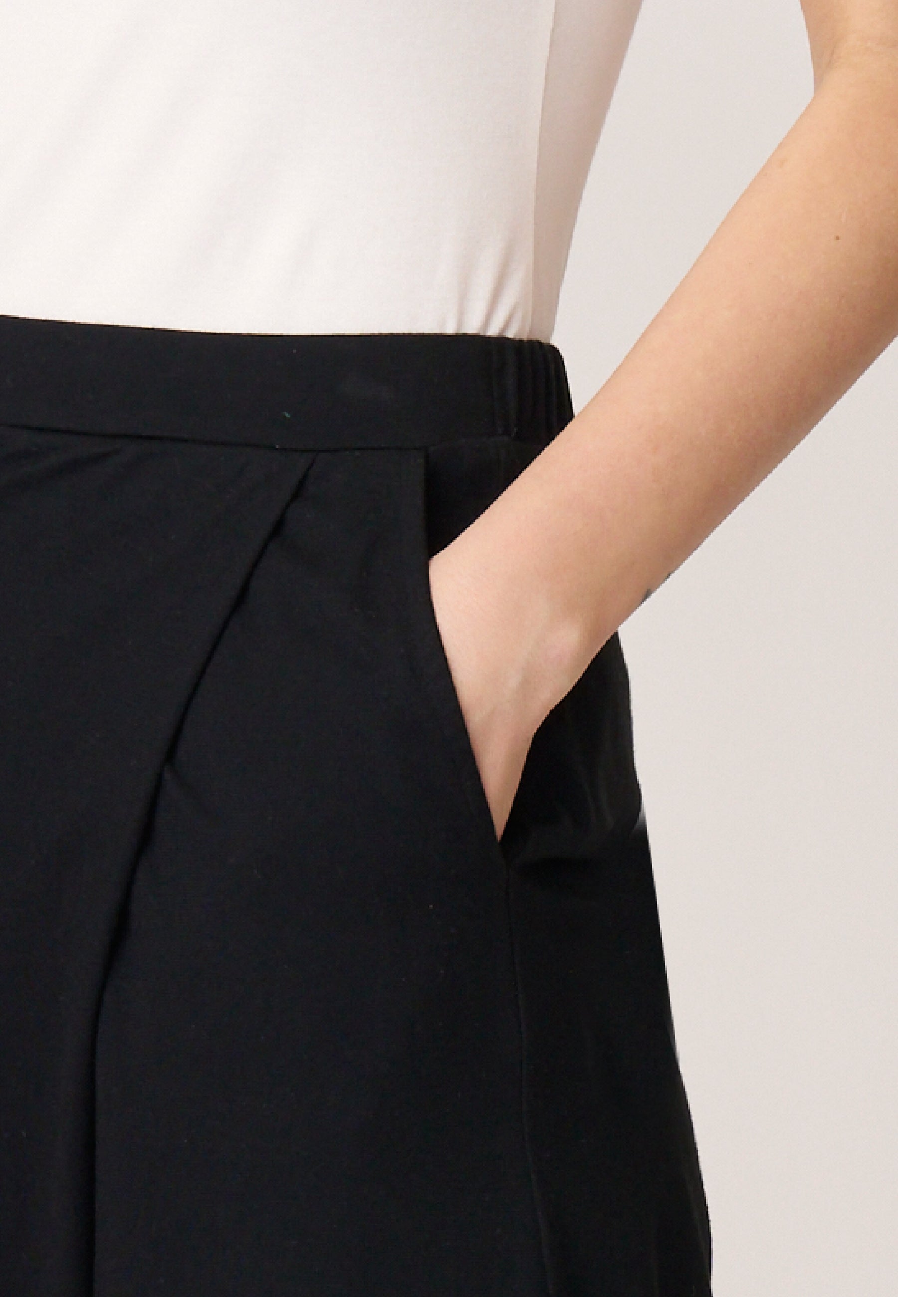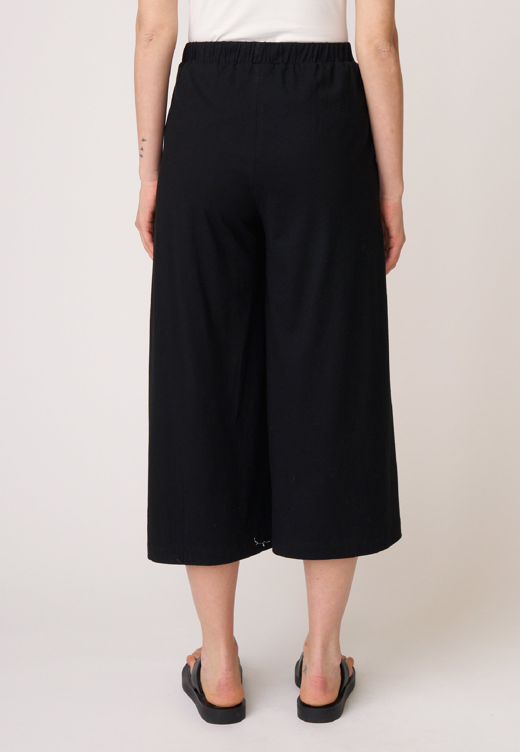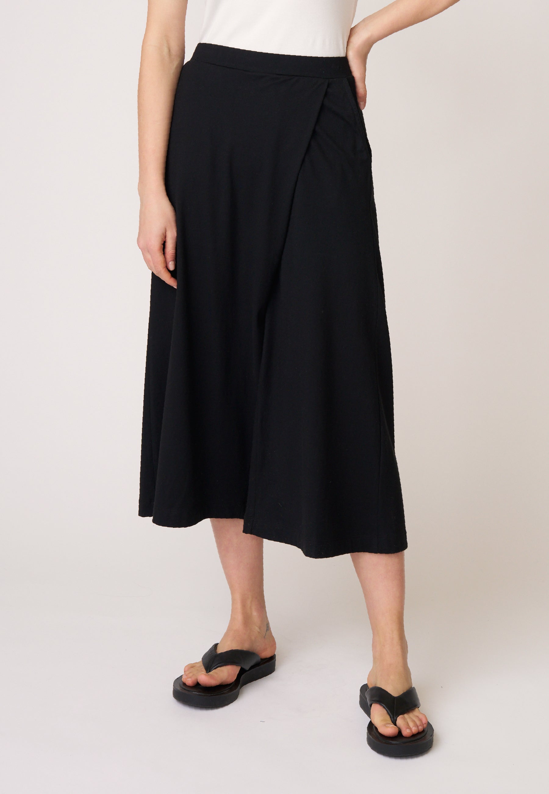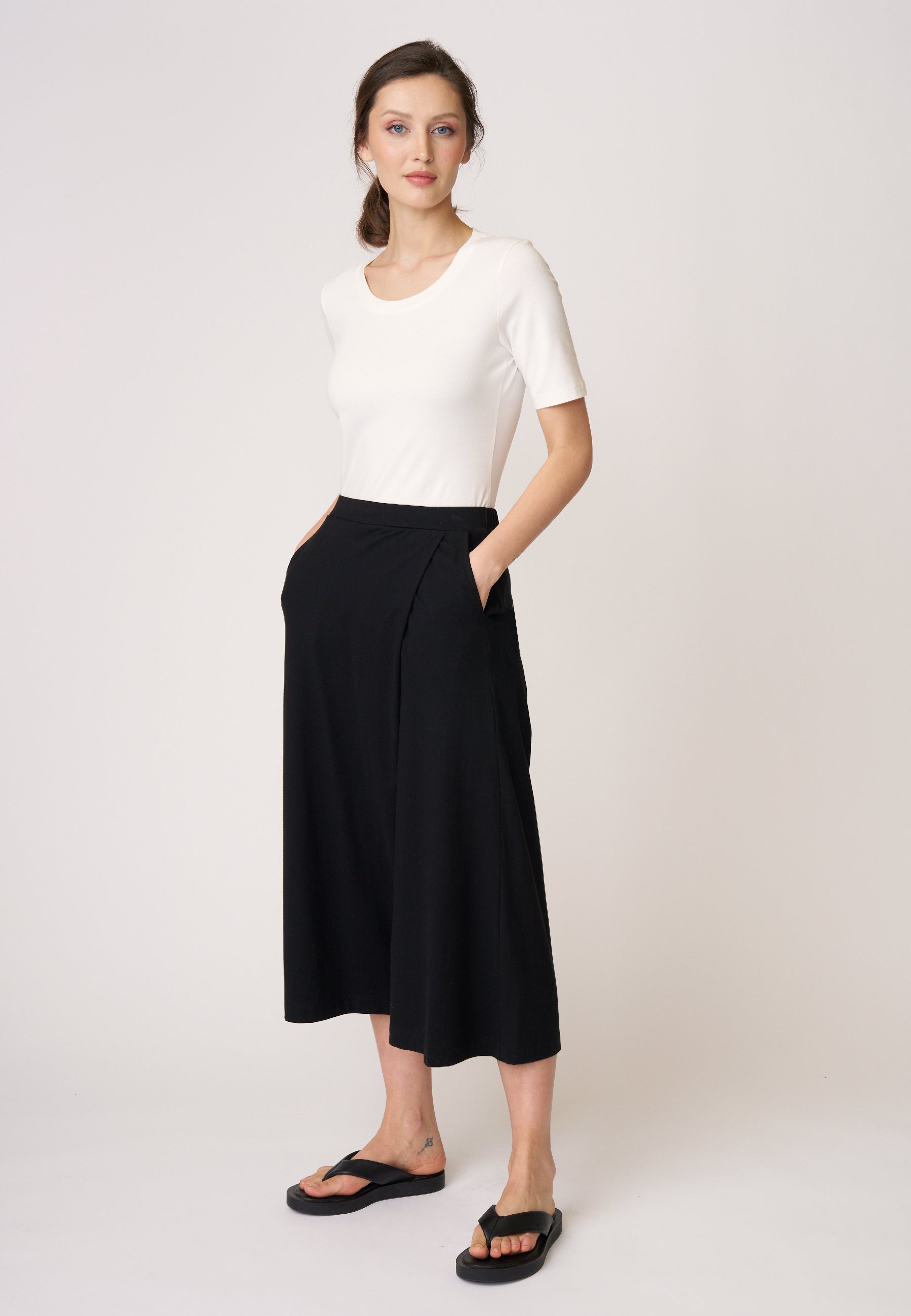 Unsere Culotte mit Rock-Charakter sorgt für bequeme und auffällige Momente. Das überlappte Hosenbein machen den Schnitt interessant und behalten dennoch den Komfort einer Hose bei. Bequeme Eingriffstaschen und ein weicher Gummibund unterstützen den komfortablen Fit der wadenlangen Hose.