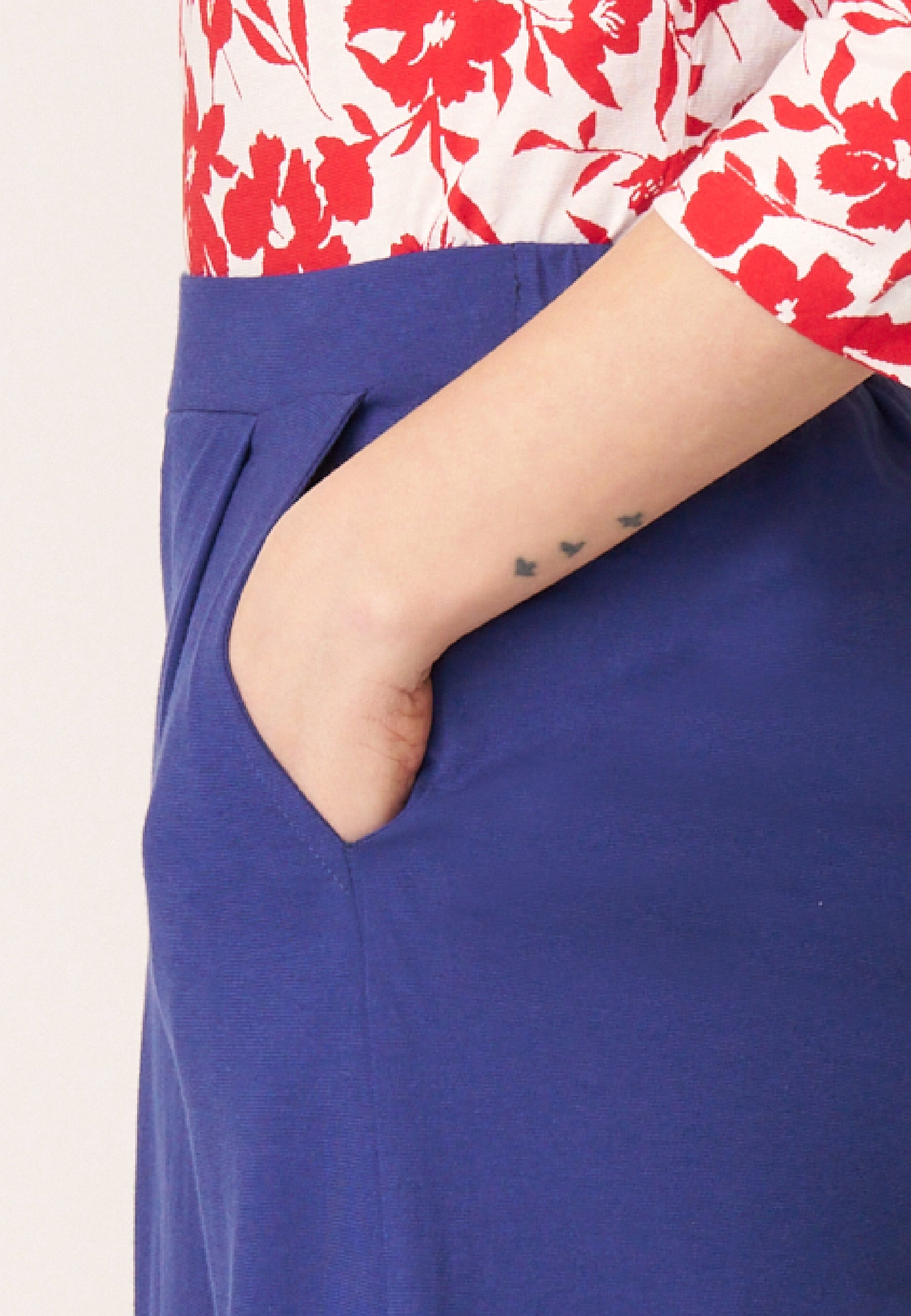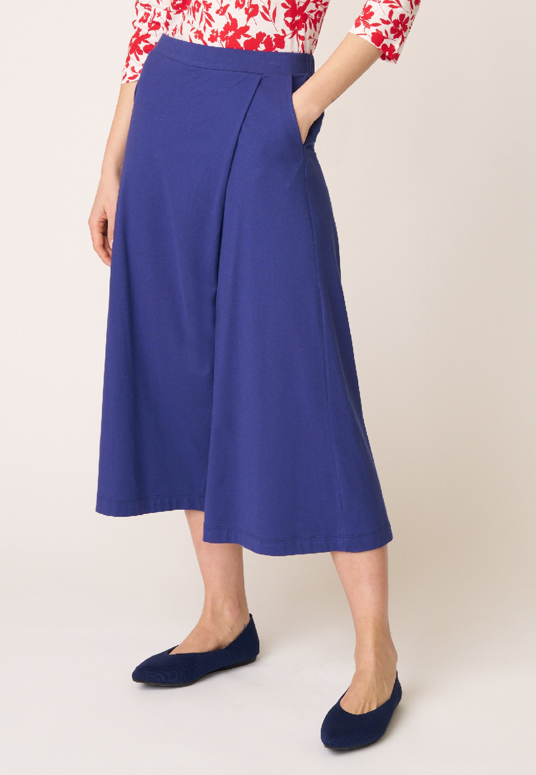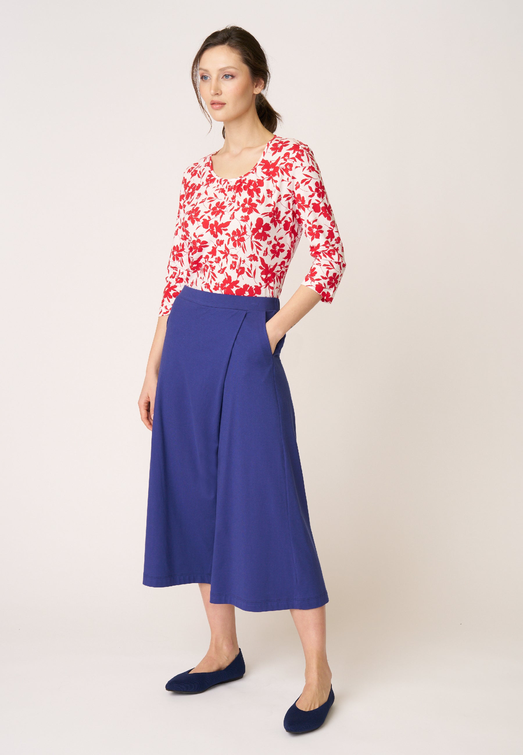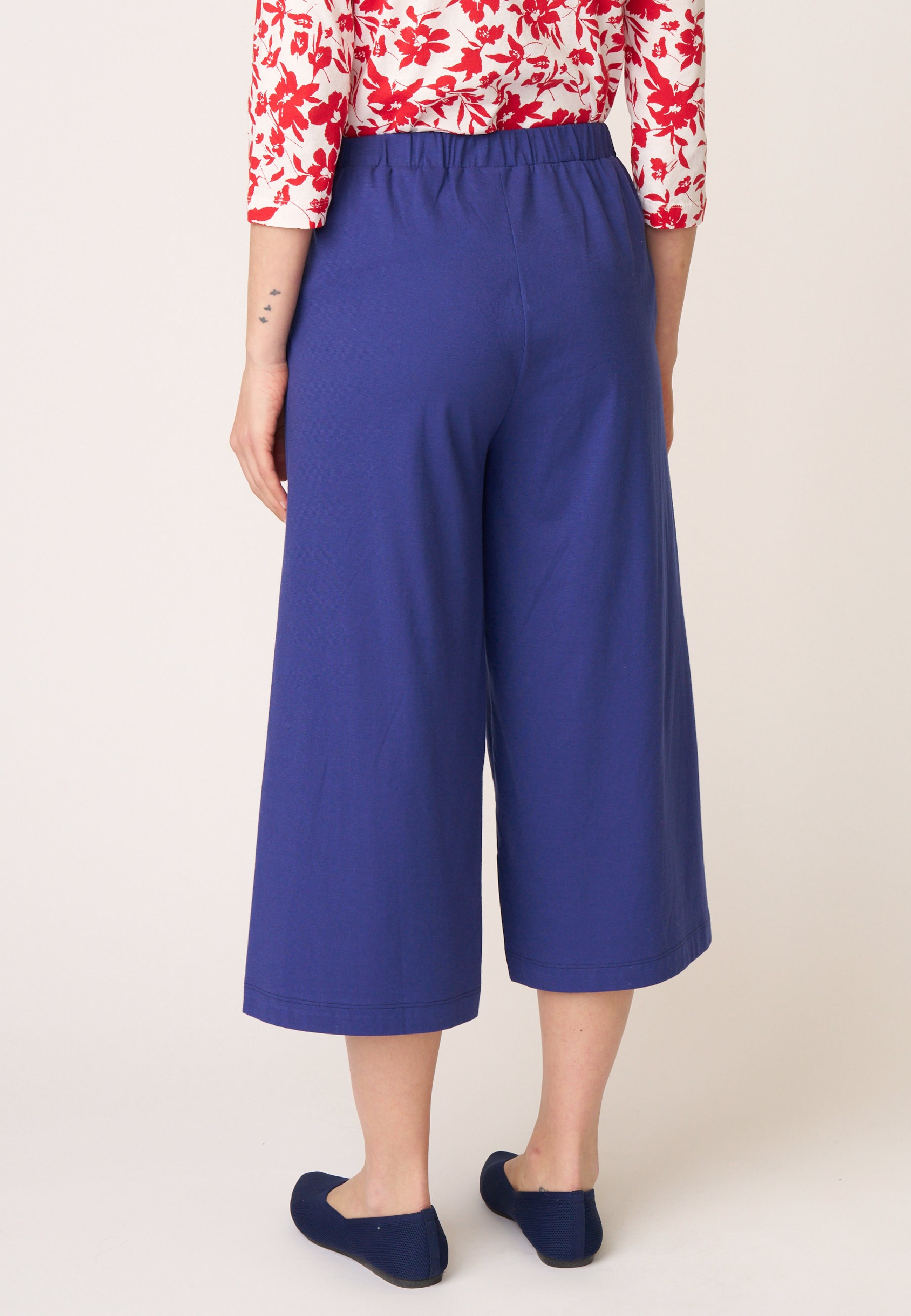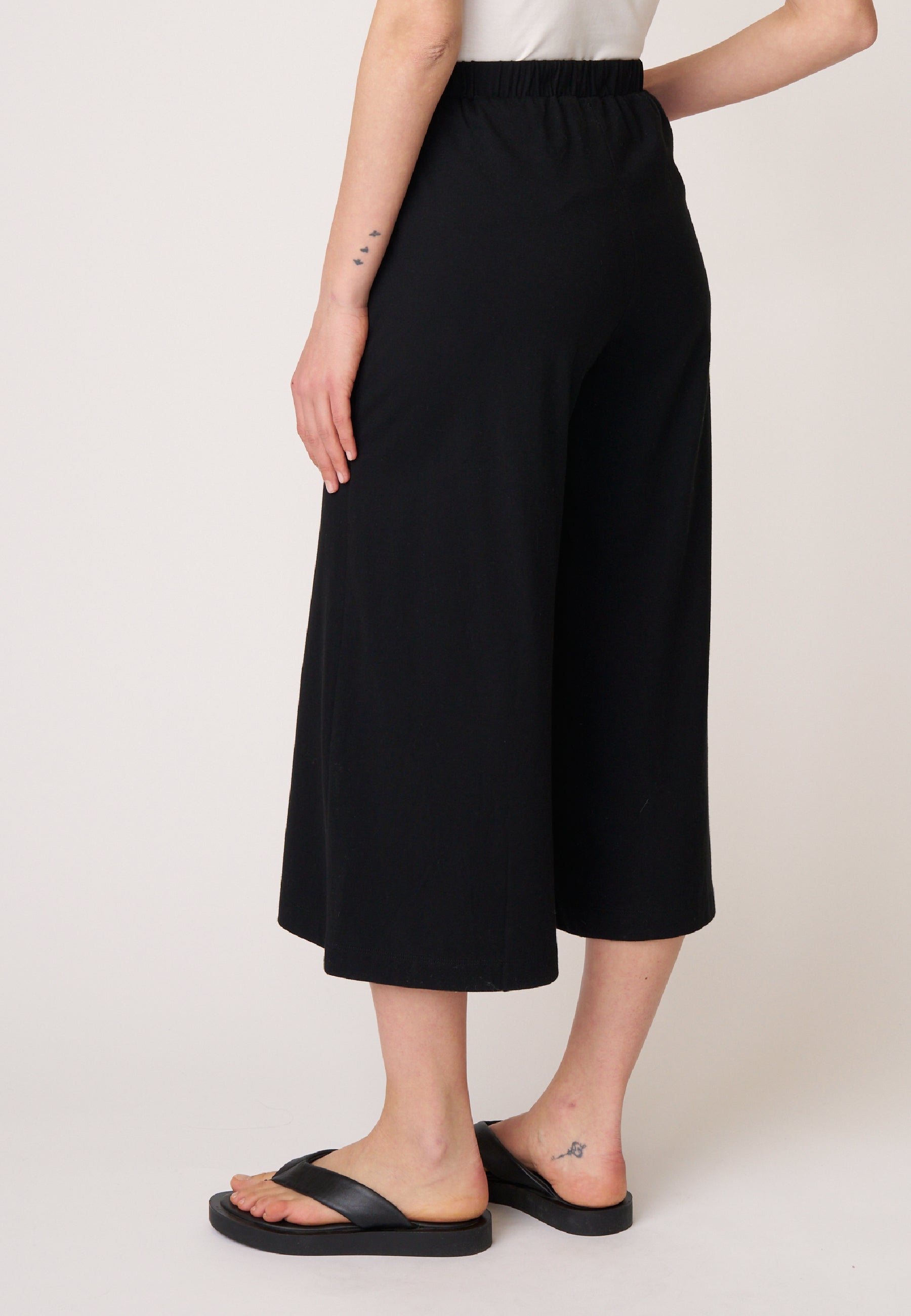Unsere Culotte mit Rock-Charakter sorgt für bequeme und auffällige Momente. Das überlappte Hosenbein machen den Schnitt interessant und behalten dennoch den Komfort einer Hose bei. Bequeme Eingriffstaschen und ein weicher Gummibund unterstützen den komfortablen Fit der wadenlangen Hose.