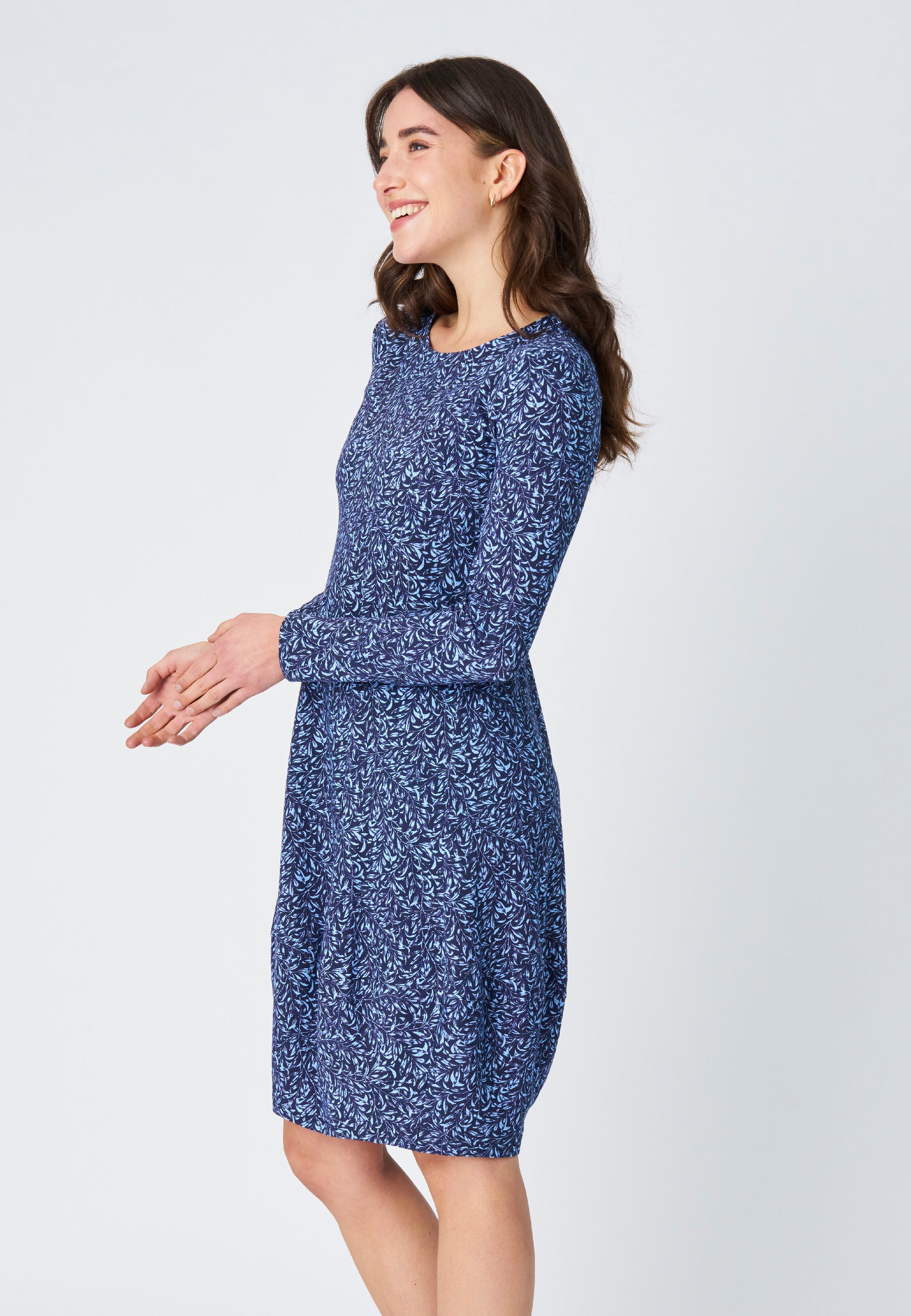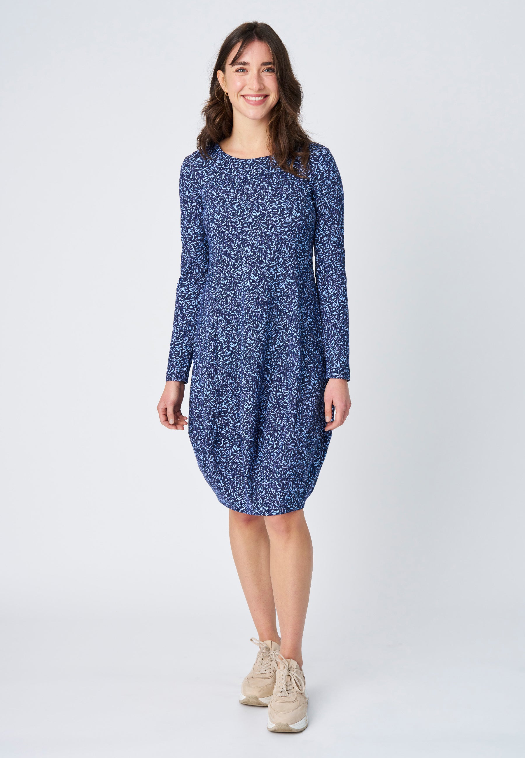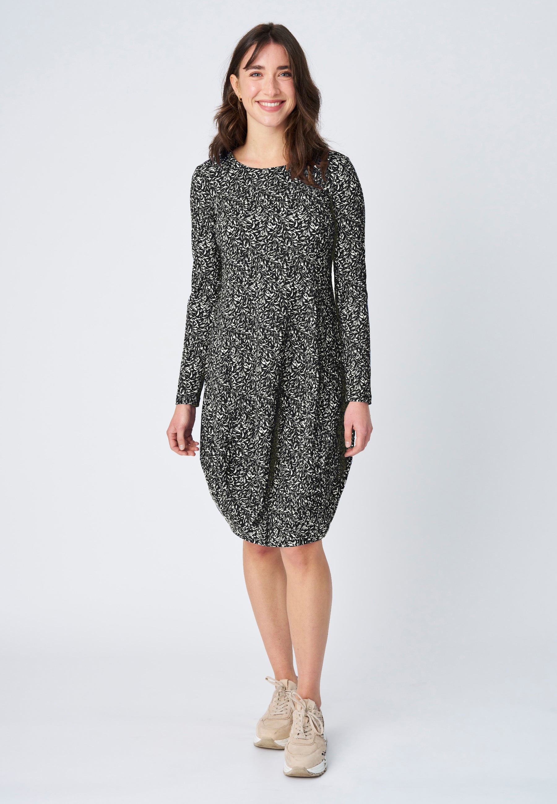 Ein Kleid wie kein anderes: Unser knielanges Kleid Miju mit flachem Rundhalsausschnitt ist tulpenförmig geschnitten und umspielt durch raffinierte Teilungsnähte und seine besondere Schnittführung die weibliche Silhouette. Die breite Blende am Saum sorgt für eine schöne Formgebung.