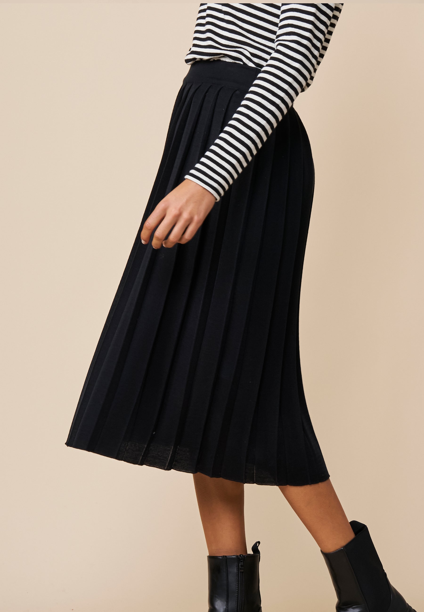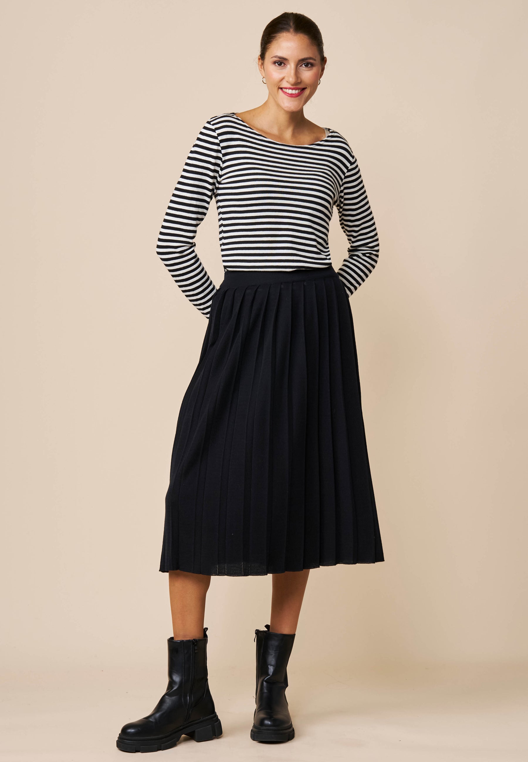 Ein Rock für besondere Augenblicke...midilang mit viel schwingender Saumweite durch die aufspringenden, gestrickten Falten. Der elastische Taillenbund sorgt für Tragekomfort.