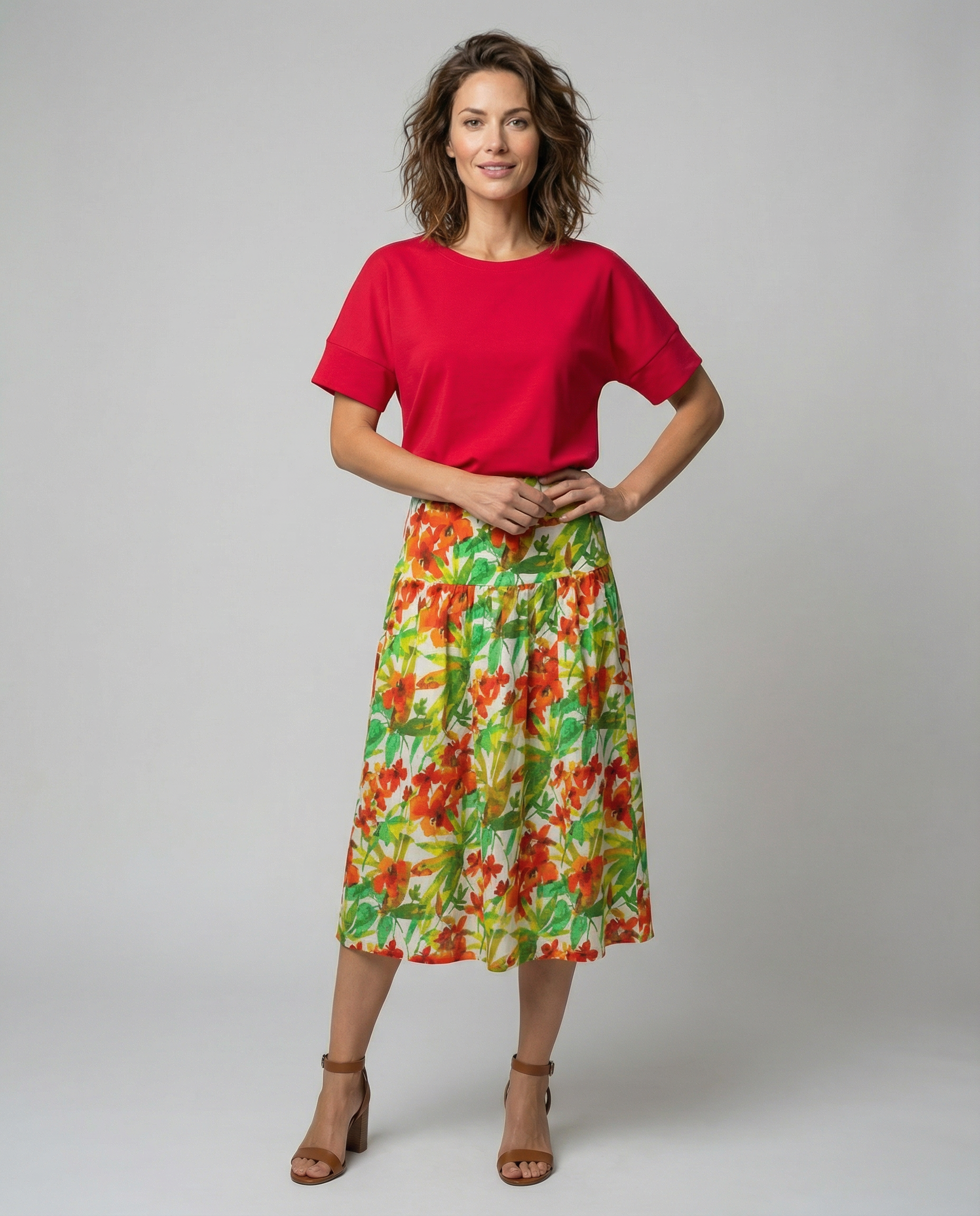 Rock Doreen ist ein echter Klassiker und begeistert seit vielen Saisons mit seinem schlichten, durchdachten Design. Der knielange Schnitt mit ausgestelltem Saum in A-Linie sorgt für eine zeitlose Silhouette. Besonderes Highlight ist der hohe, elastische Bund, der sich flexibel tragen lässt – so können Länge und Bundform individuell variiert werden. Ein vielseitiges Essential für eine nachhaltige Garderobe.